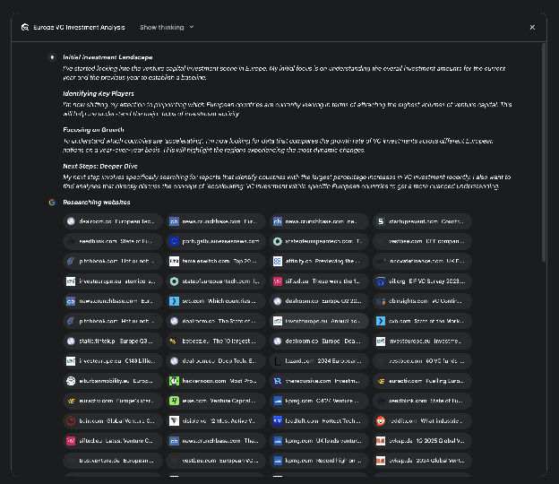 • Google Deep Research 是一个代表我们分析使用 Google 搜索作为工具获得的来源的 Agent。它反思、规划并执行。